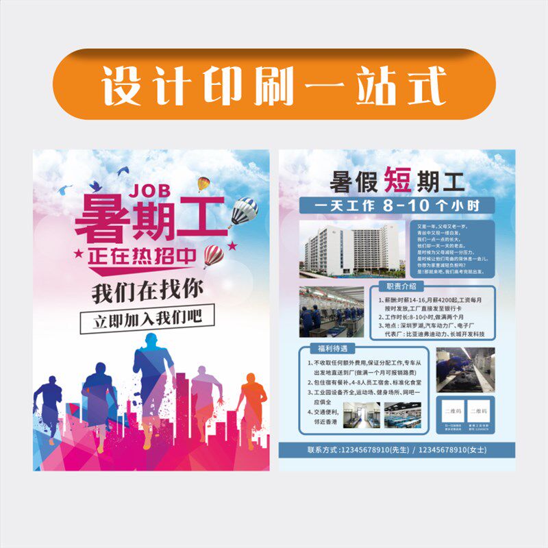 公司企业招聘暑假工广告彩页宣传单海报订制印刷设计单页折页A5A4