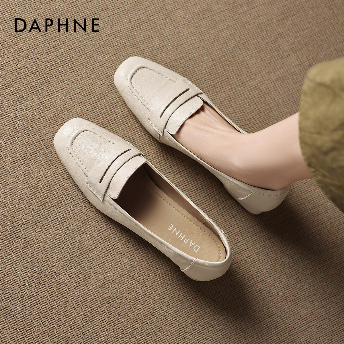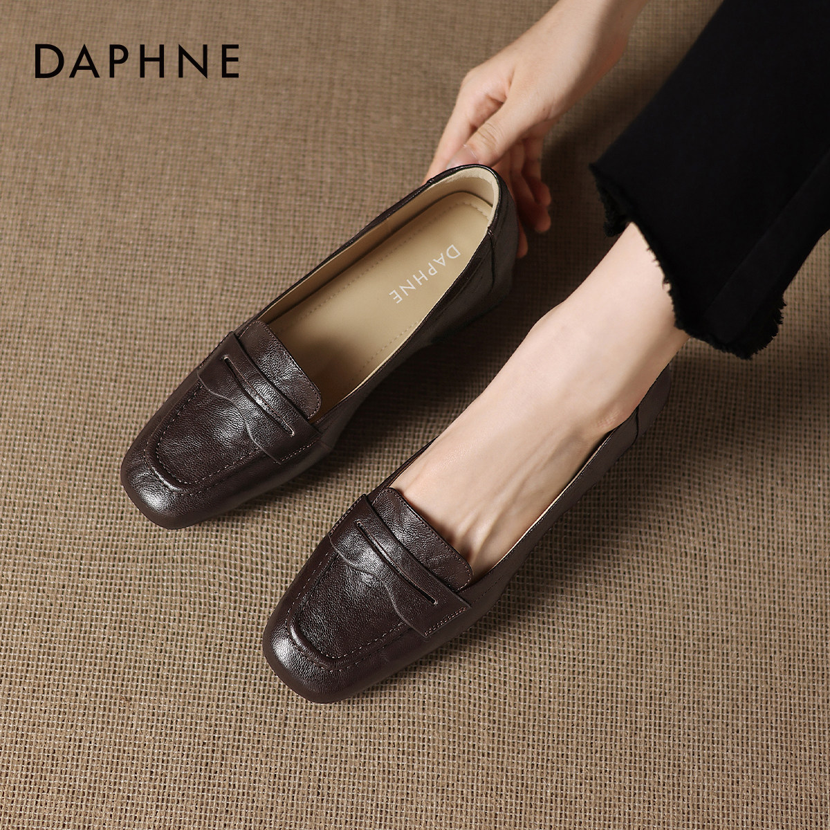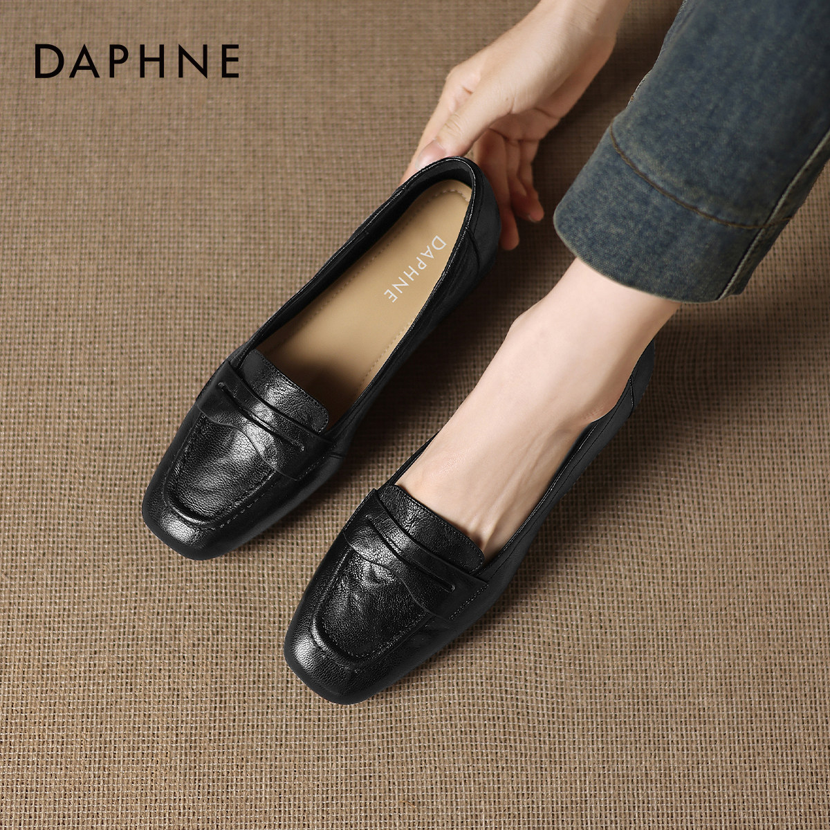 达芙妮黑色羊皮单鞋2026新款秋冬乐福鞋女鞋小jk粗跟通勤豆豆皮鞋