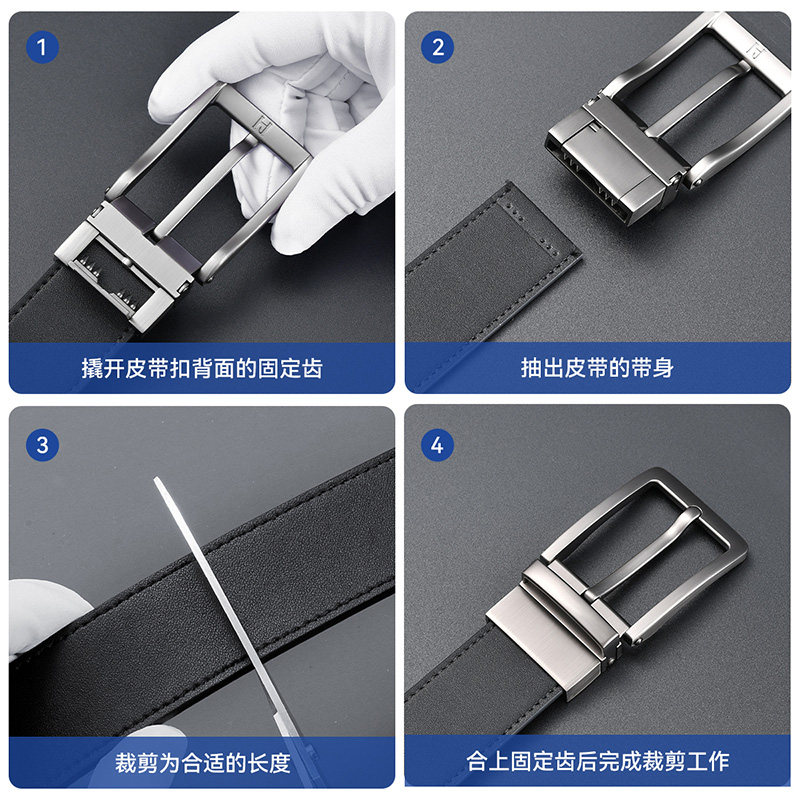 HLA/海澜之家针扣皮带双面扣头可旋转男士时尚百搭牛皮休闲裤腰带