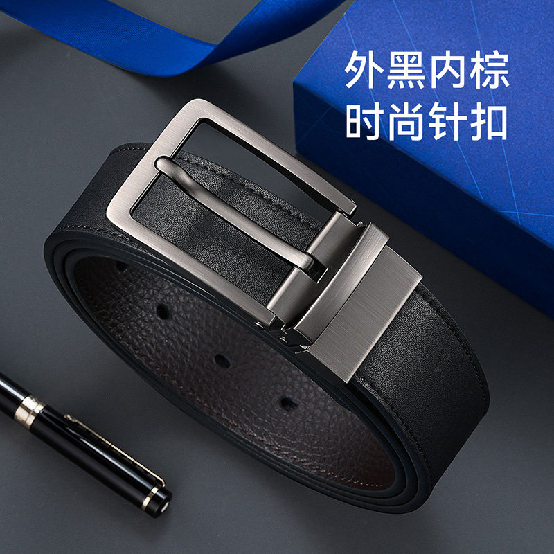 纯牛皮皮带男真皮休闲裤带男牛皮带年轻人针扣牛仔中年腰带男青年