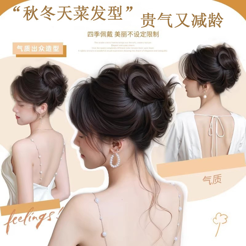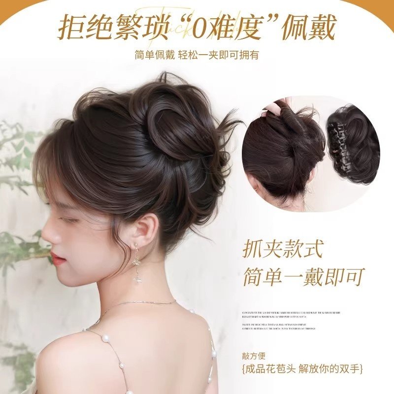 低扎丸子头假发鸡毛头抓夹盘发发包慵懒感造型头饰自然蓬松后脑勺