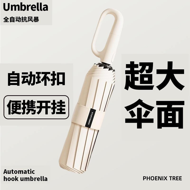 24骨新款环扣自动伞抗风暴雨伞加大加厚户外挂扣防嗮防雨晴雨伞