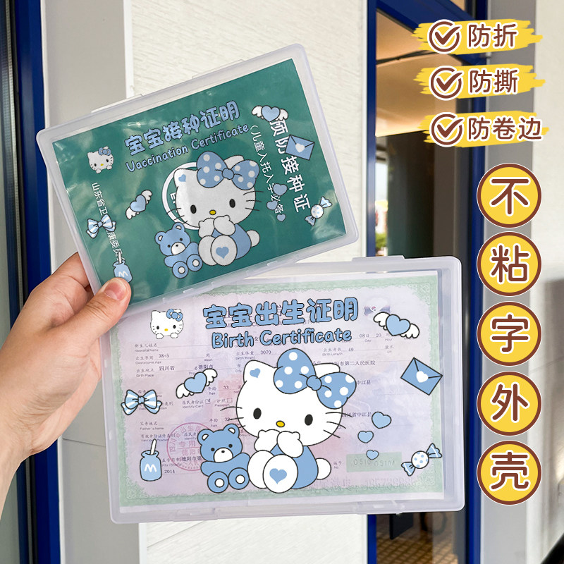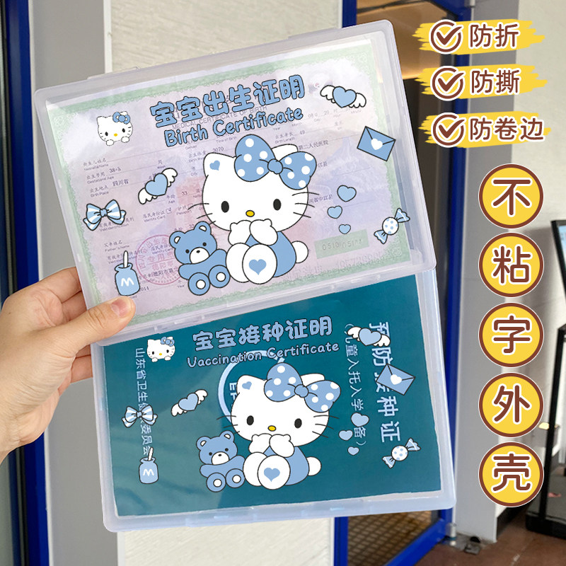 卡通猫出生证明收纳盒不粘字2025新款KT接种疫苗本保护套防折外壳