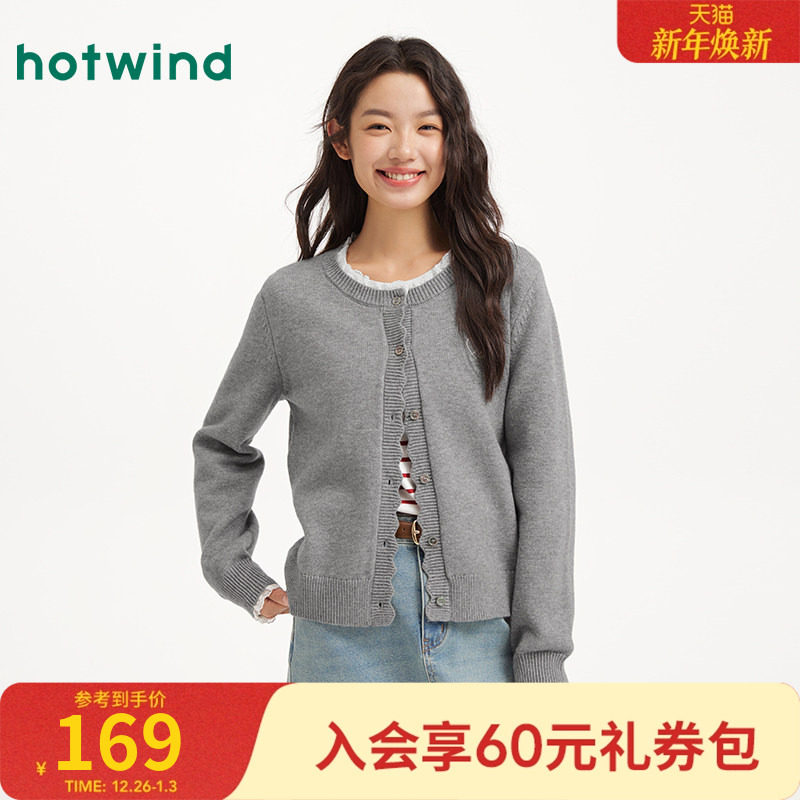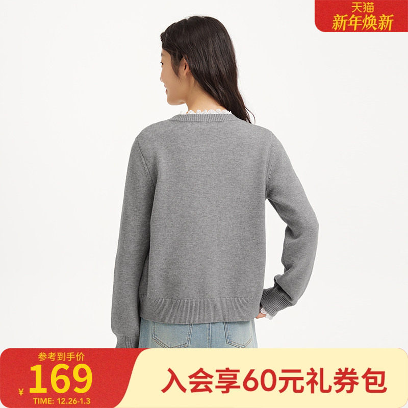 热风2025年冬季新款女士甜美花边针织开衫柔软亲肤温柔减龄