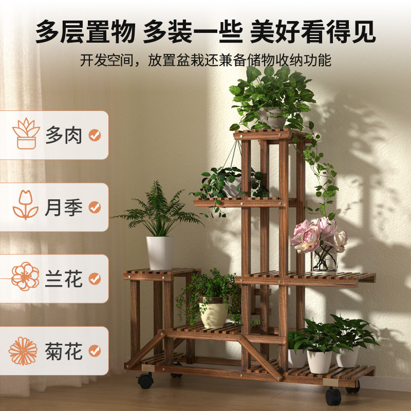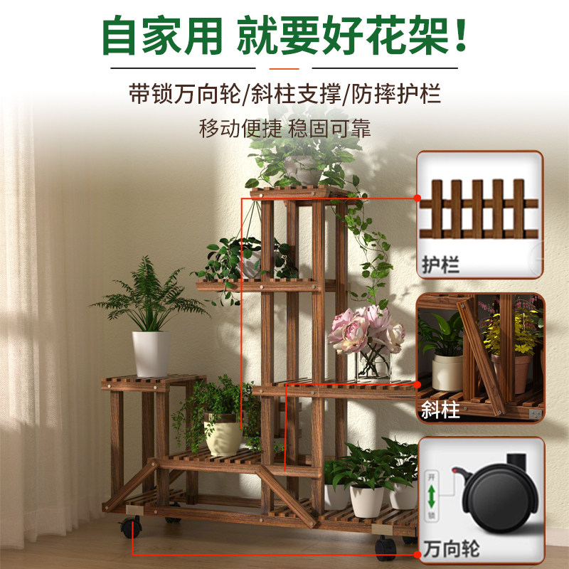 花架子客厅落地式置物架实木多层阳台装饰多肉花盆植物摆放架移动