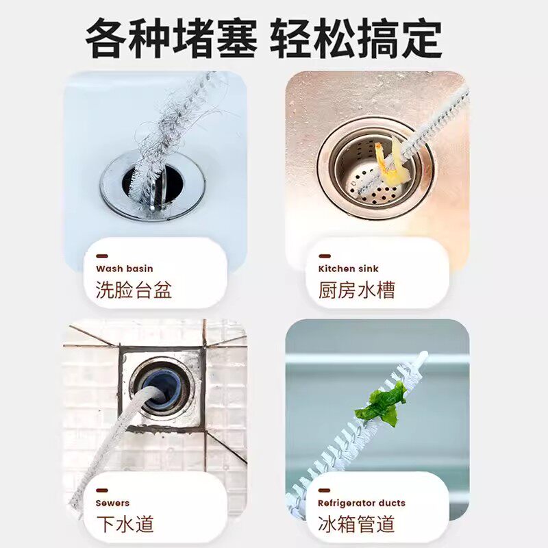 下水管道疏通器洗脸盆浴室地漏毛发清洁刷可弯曲马桶疏通管道刷
