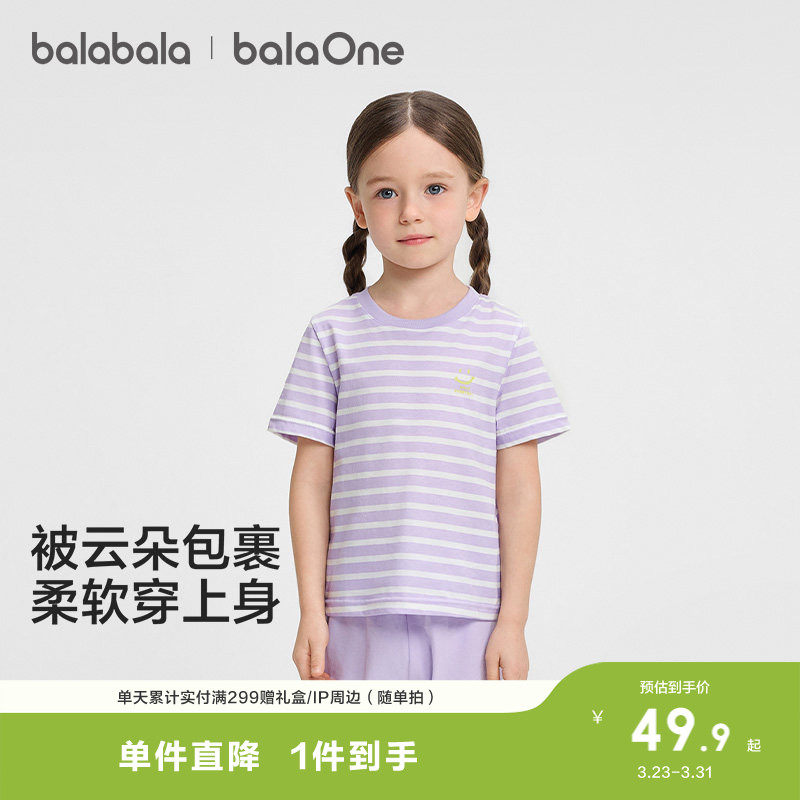 巴拉巴拉童装儿童短袖T恤男童女童上衣夏季新款亲子装纯棉空调服