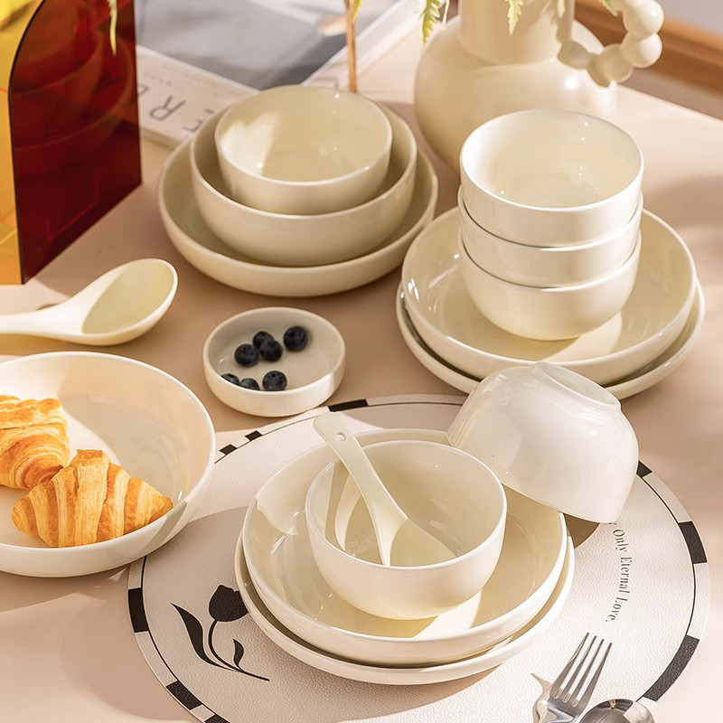 日式碗家用2025新款高颜值餐具套装好看的碗盘碟奶油风饭碗釉下彩