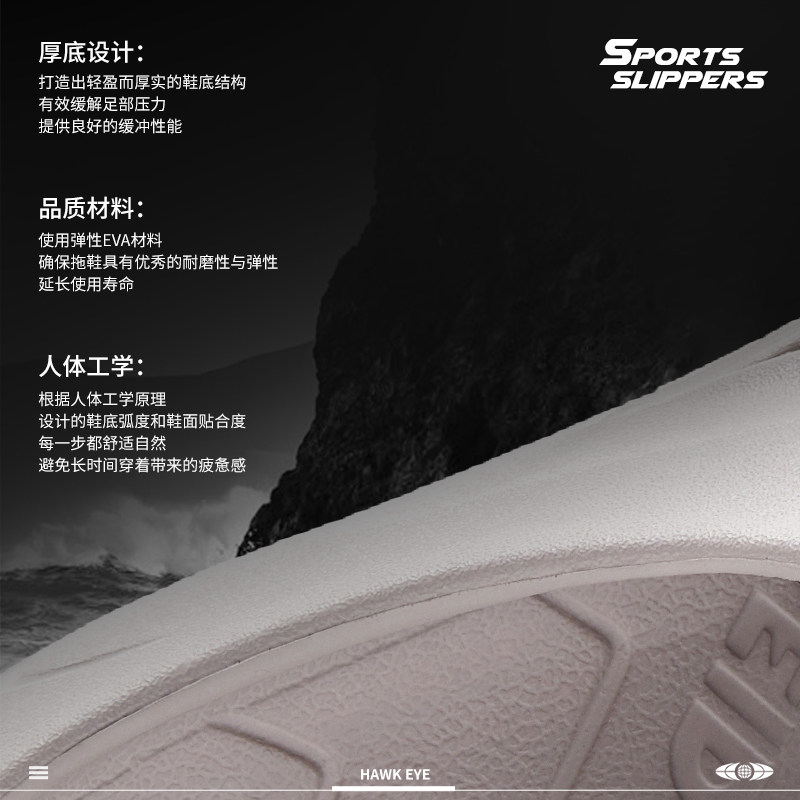 维动鹰眼运动拖鞋男夏季外穿凉拖厚底篮球拖鞋游泳防滑户外沙滩鞋