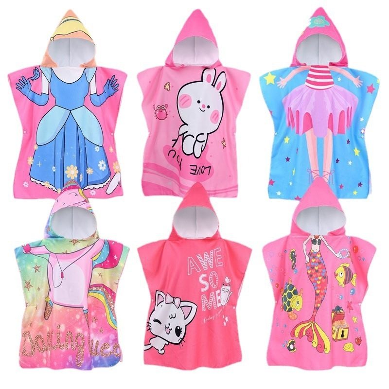 儿童游泳速干浴巾专用大童吸水澡穿的浴袍斗篷披风可穿式卡通猫咪