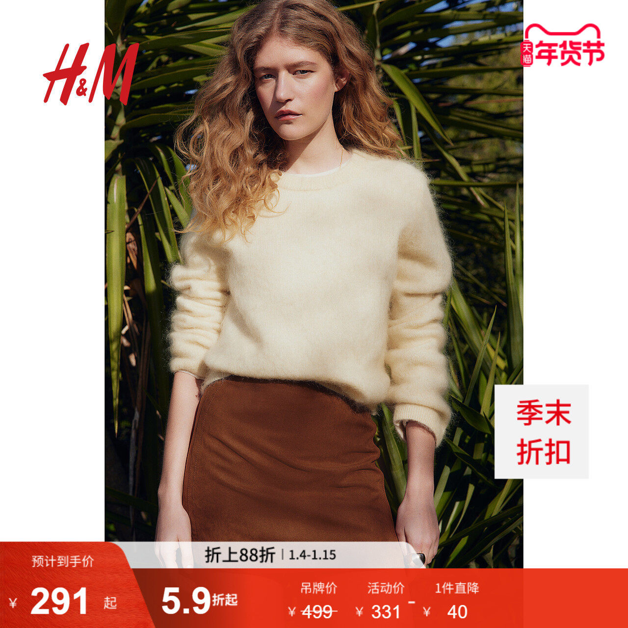 HM女装毛针织衫冬季修身柔软马海毛羊毛混纺套衫1246665