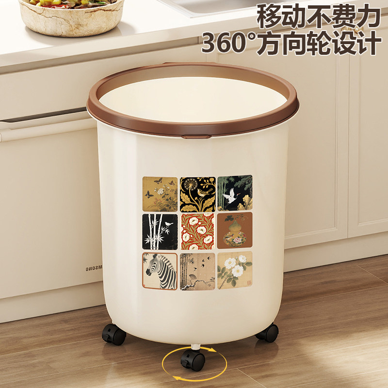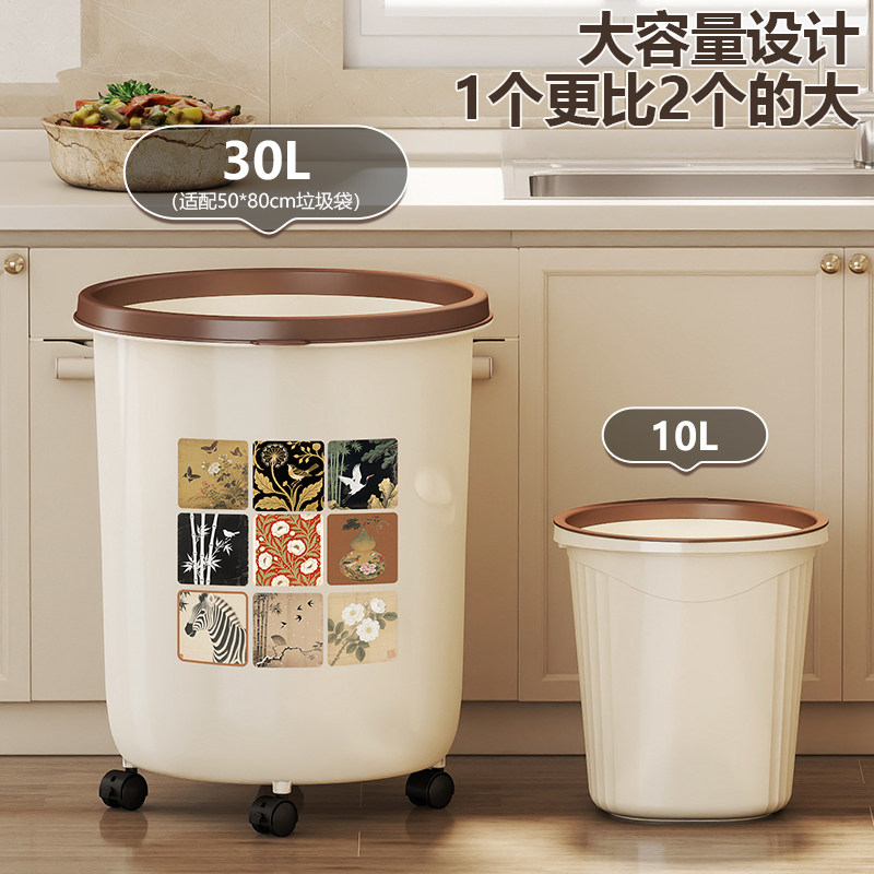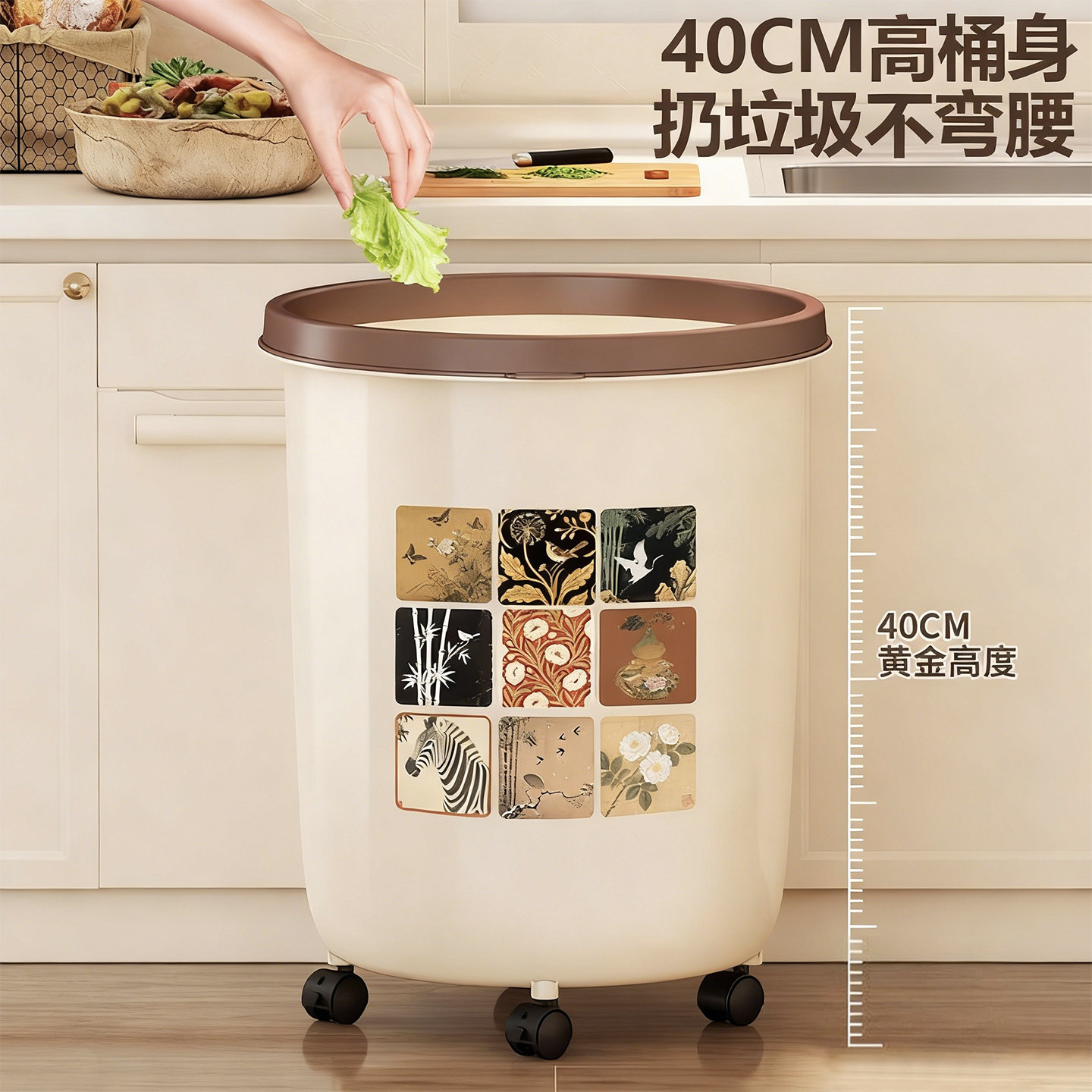 厨房专用垃圾桶家用2025新款客厅高颜值免弯腰大容量桶带轮可移动