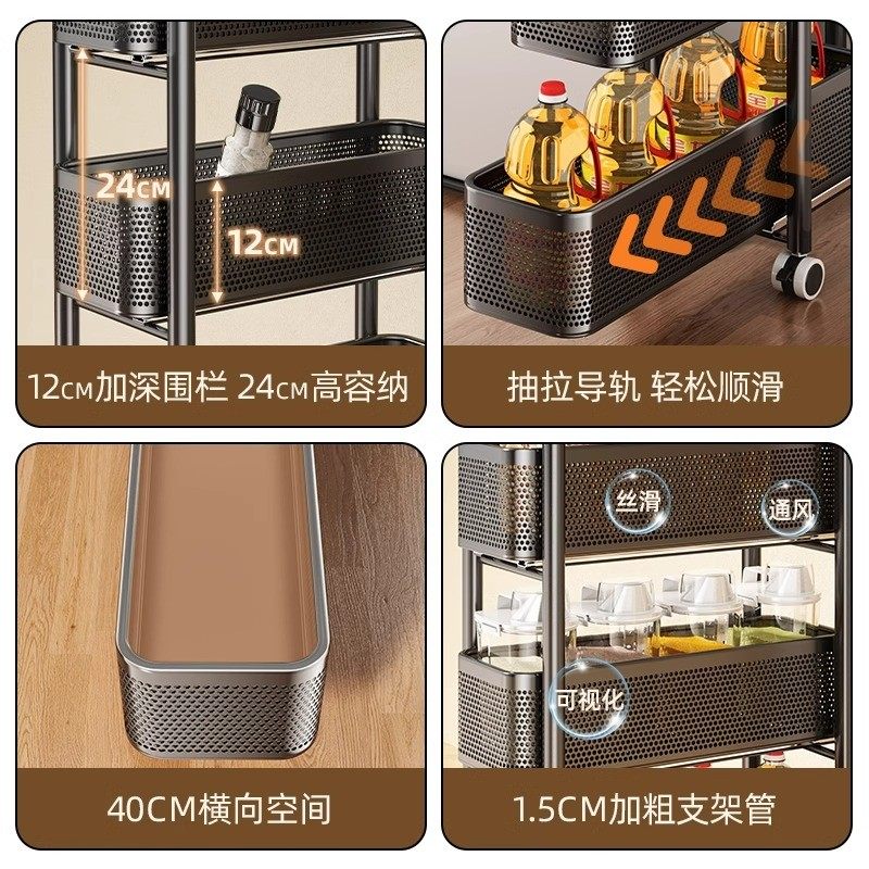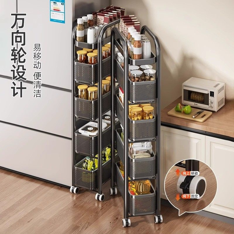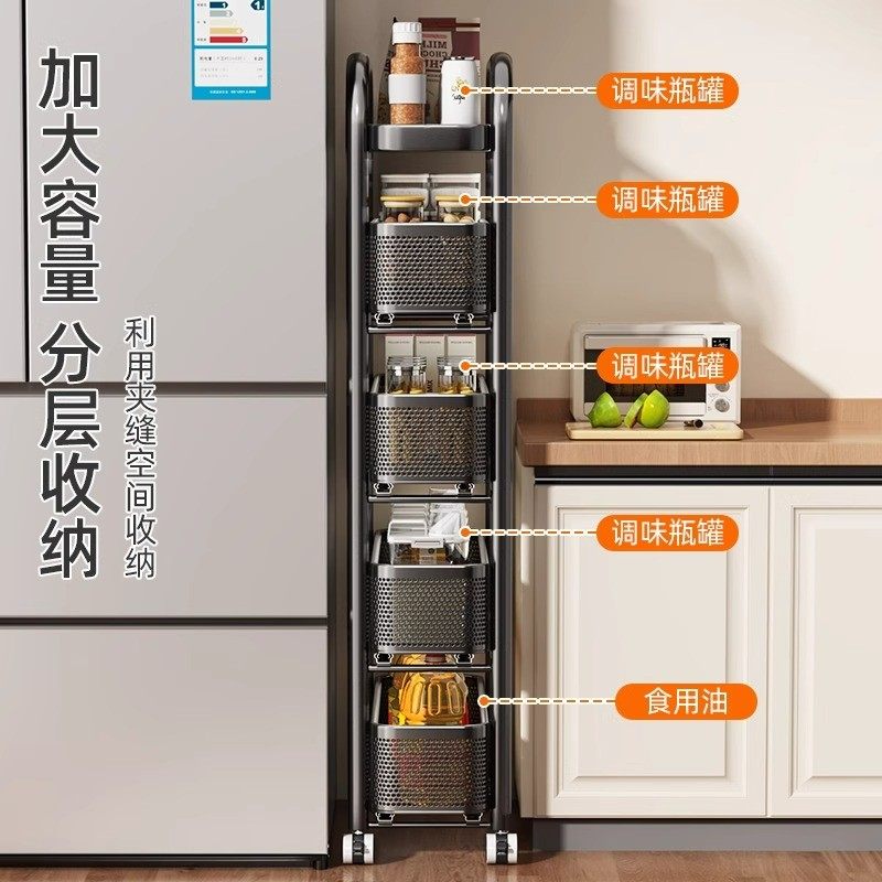 厨房夹缝置物架落地极窄缝隙收纳柜多层冰箱抽拉柜小推车零食移动