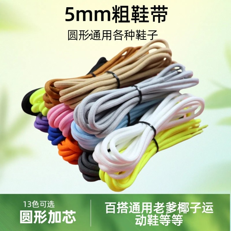 马丁靴鞋带圆绳儿童老爹鞋运动鞋白色黑色棕鞋带绳篮球鞋鞋子防滑