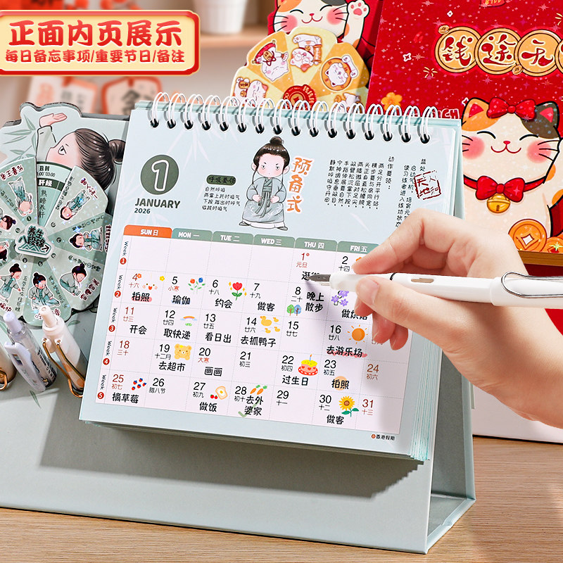 台历2026年新款日历定制logo创意简约小清新韩式办公年历个性中国风桌面摆件商务工作记事计划本订制广告月历