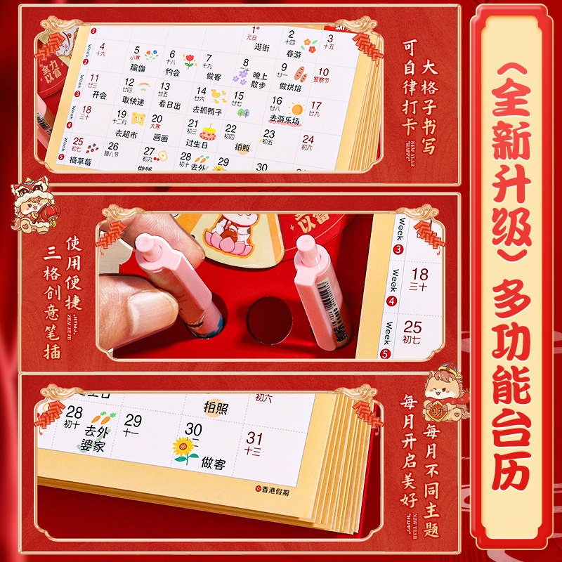 2026年新款台历创意卡通日历全年马年迷你小台历桌面摆件办公室学生每日计划表工作自律打卡记事mini计划月历