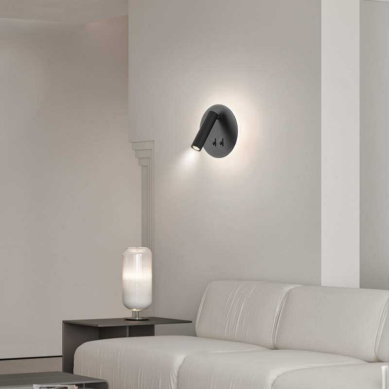 跨境热卖圆形壁灯卧室床头阅读灯过道壁灯简约氛围感可充电壁灯