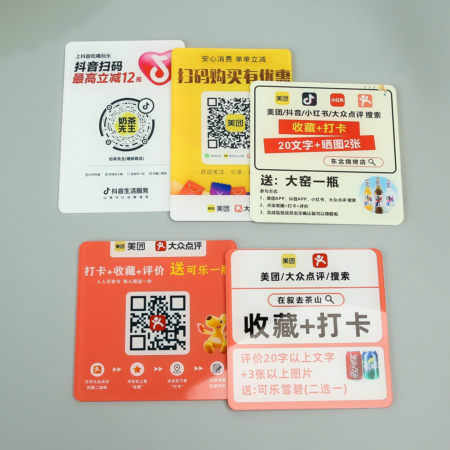 收藏打卡大众点评抖音扫码牌定制关注账号二维码展示牌亚克力墙贴