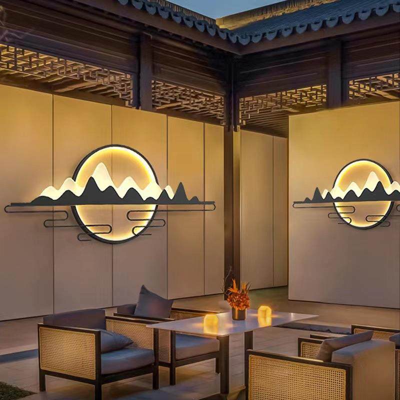 LED户外壁灯山水画庭院别墅防水景观灯 新中式室内客厅装饰壁灯