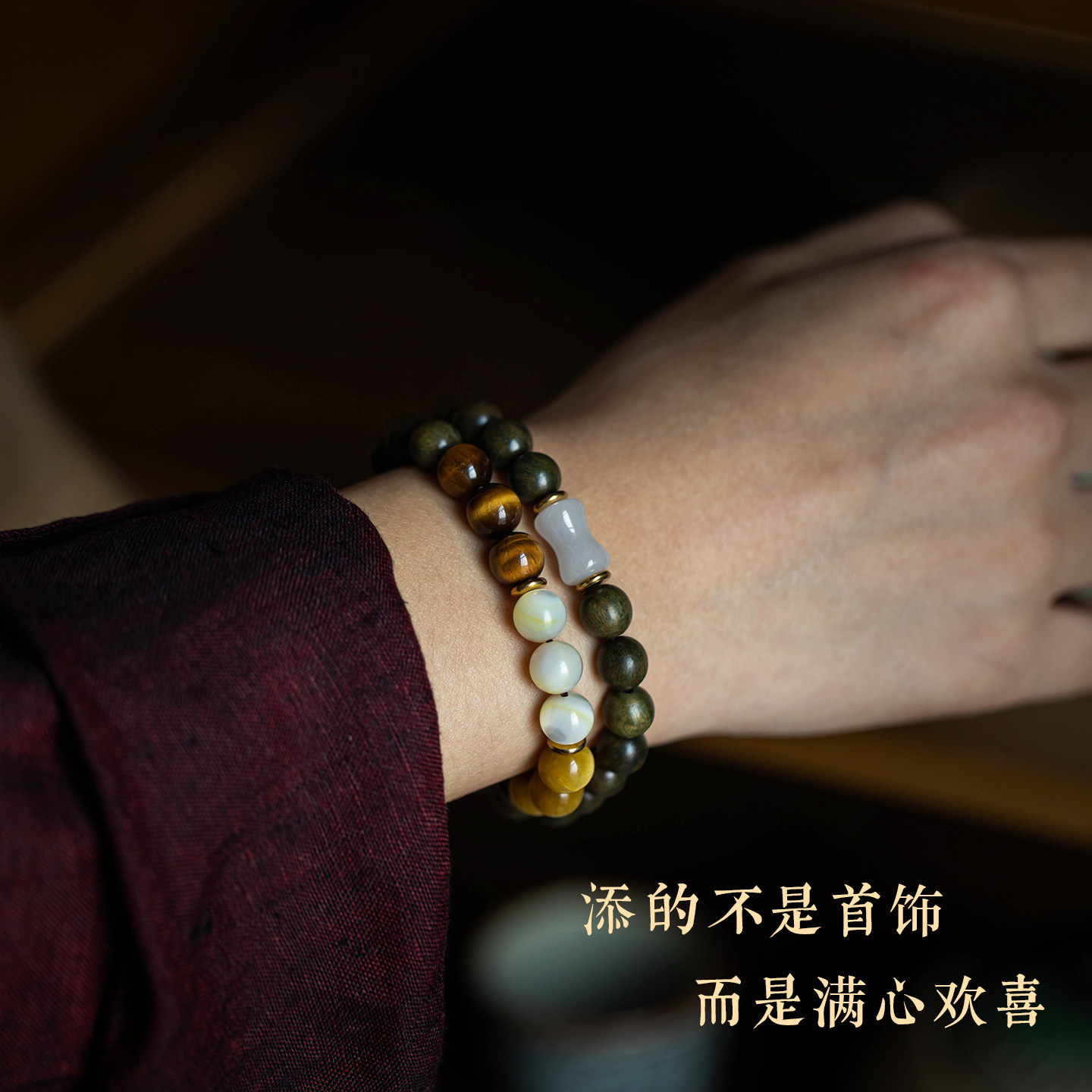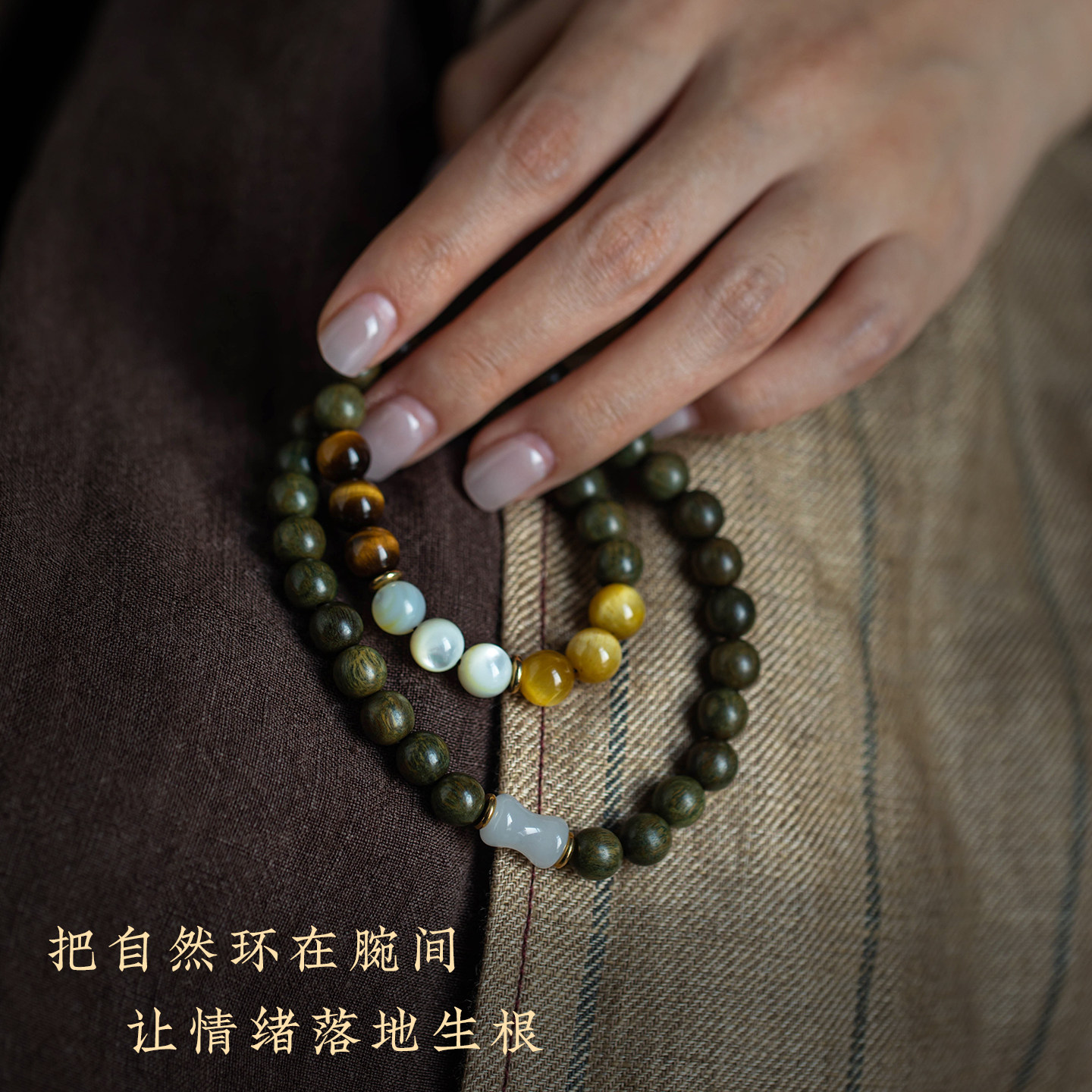 天然绿檀手串虎眼石招财好运木质手链玉石手饰男女新中式高档礼物