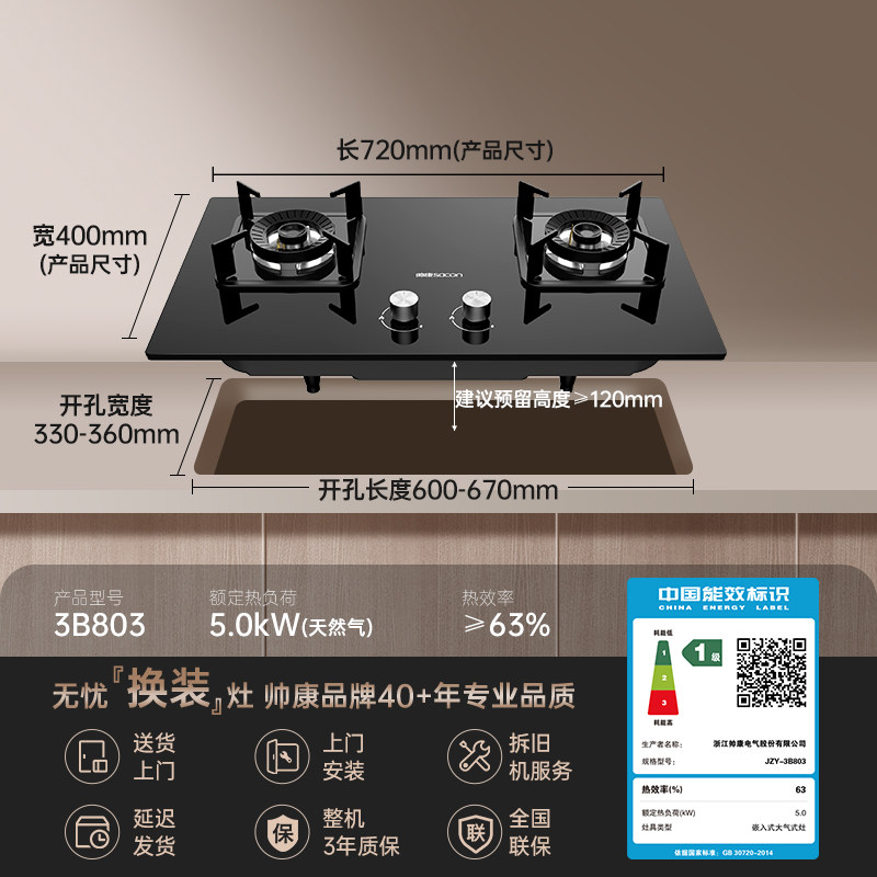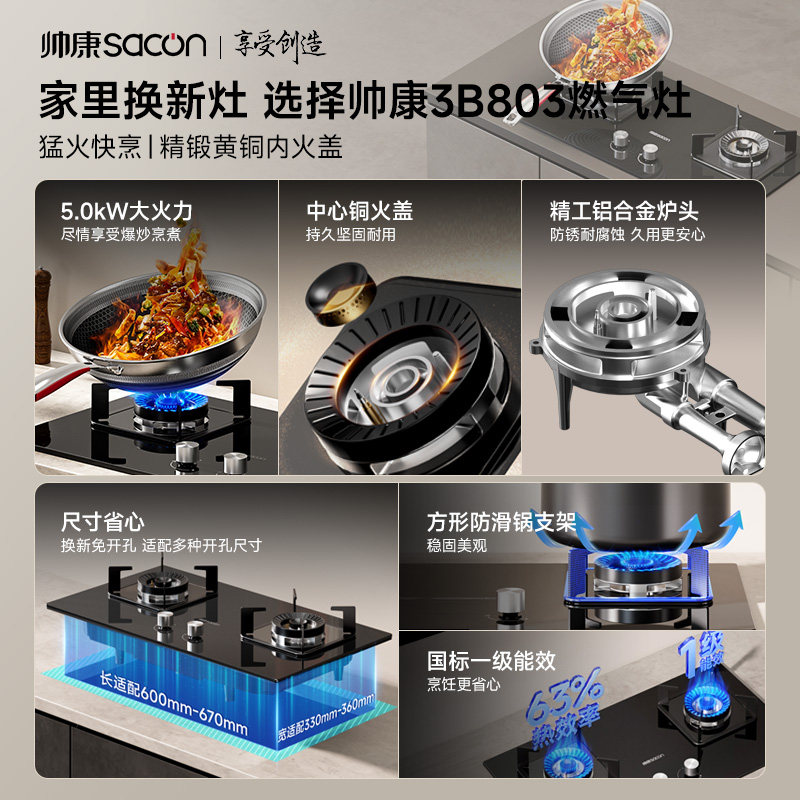 帅康3B803燃气灶家用双灶天然气猛火液化气煤气灶具以旧换新补贴