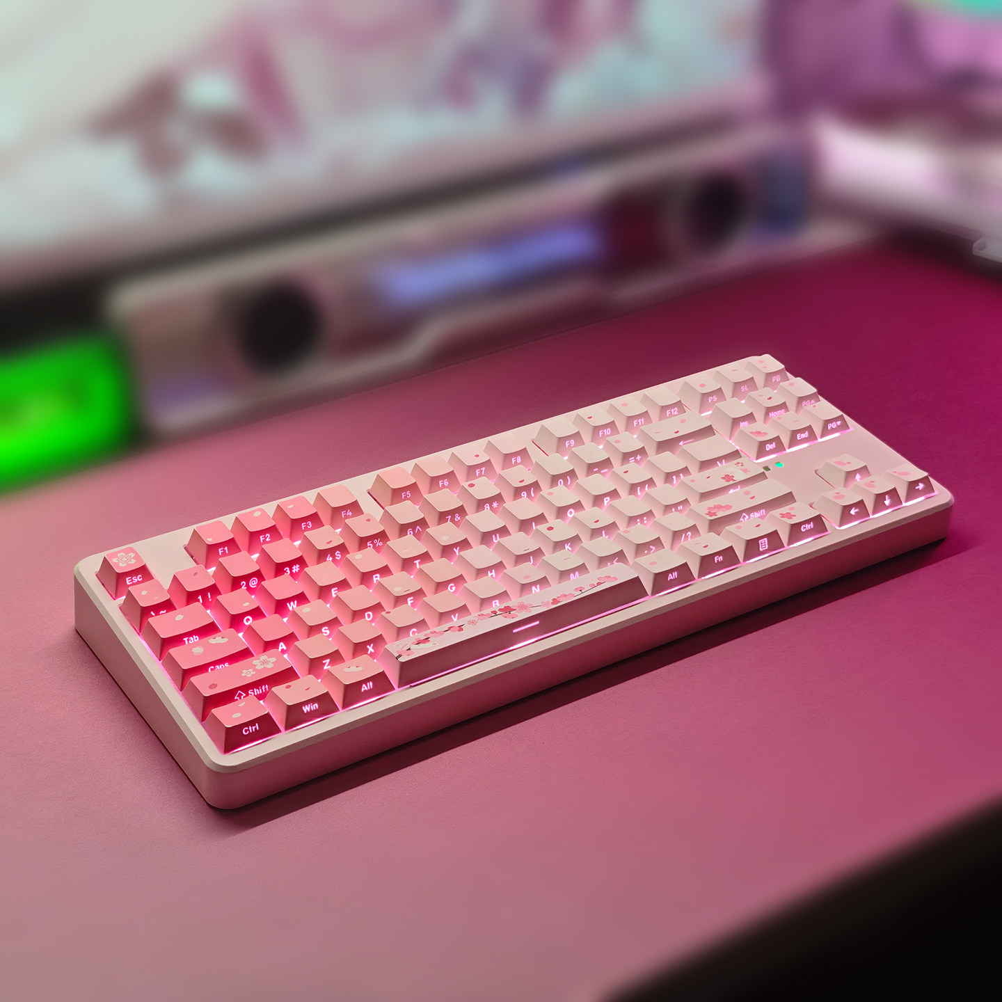 腹灵nx87机械键盘女生高颜值无线有线可爱透明发光静音电竞游戏