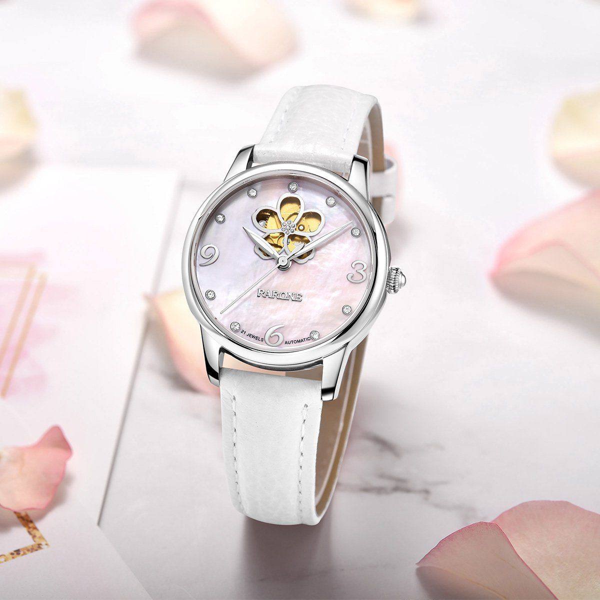 【新年礼物】Rarone雷诺手表女士全自动机械机芯腕表贝母表盘镂空