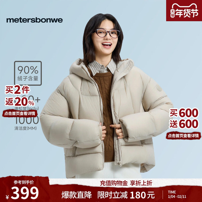 美特斯邦威女装羽绒服冬季宽松短款保暖连帽潮流休闲短款外套