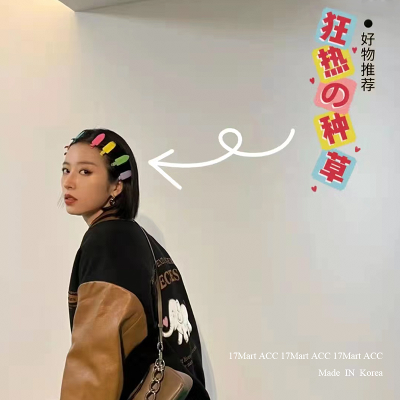 17mart韩国发饰甜美多巴胺无痕发夹侧边夹彩色刘海夹化妆定型发卡
