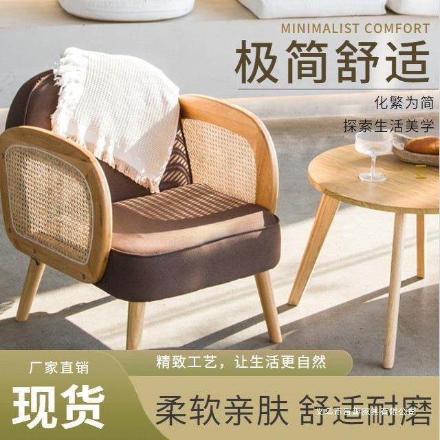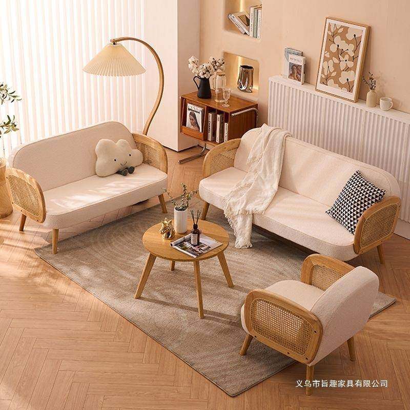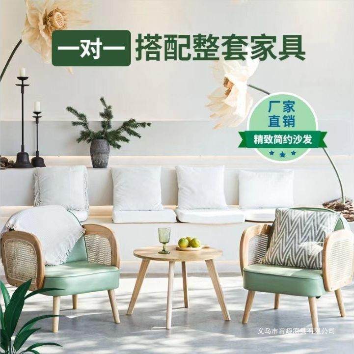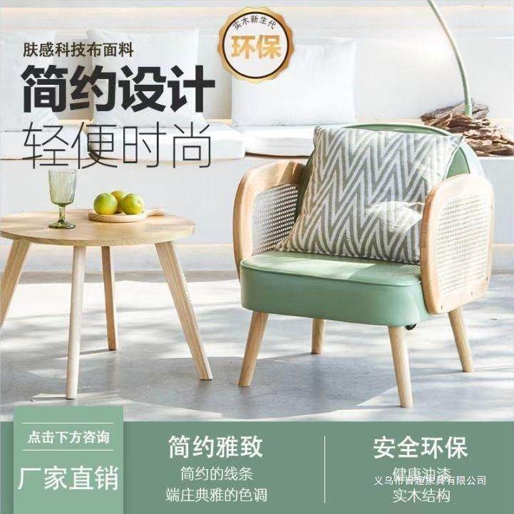 实木单人沙发茶几组合小户型客厅现代民宿酒店简约科技布艺出租房
