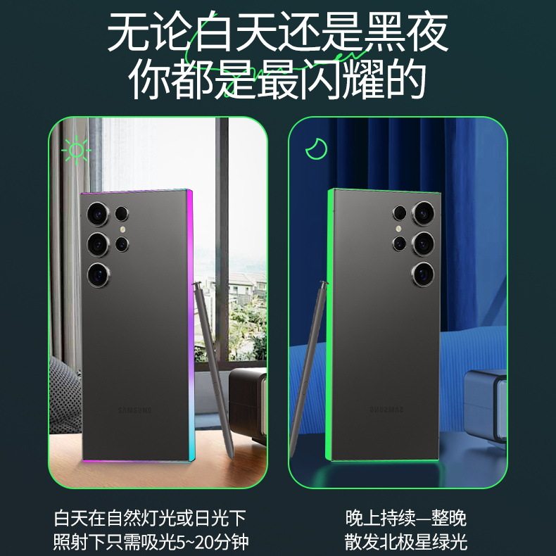 适用三星S25ultra手机边框夜光贴纸s24ultra改色膜s25+侧面贴膜S23彩膜S22透明磨砂炫彩防刮个性变色保护贴纸