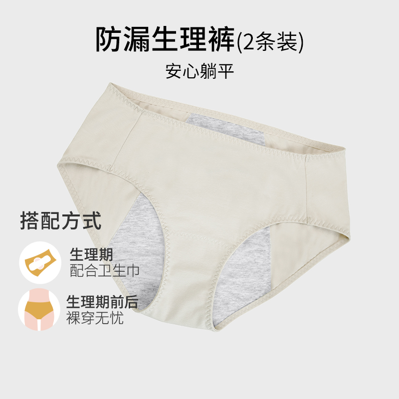HSIA遐 生理期内裤女士经期防漏安全裤棉质中腰平角裤姨妈裤2条装