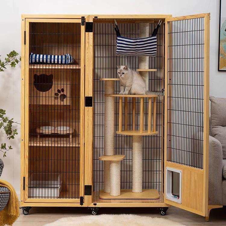 猫别墅厂家直销实木猫笼超大宠物家用笼室内三层四层自由空间猫房