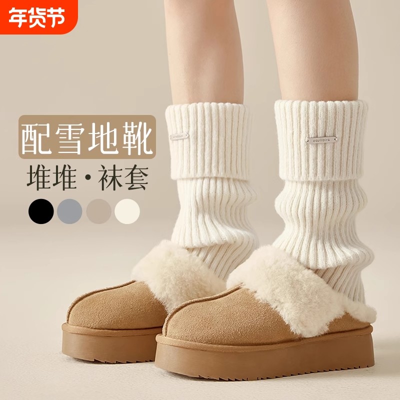 配雪地靴袜套堆堆袜女秋冬季腿袜保暖美拉德小腿袜y2k针织长筒袜