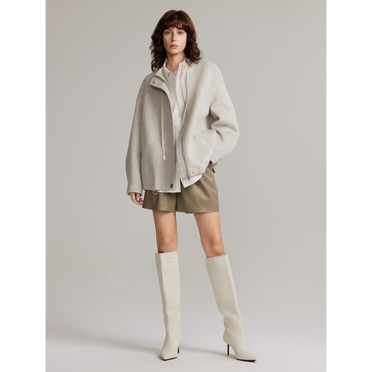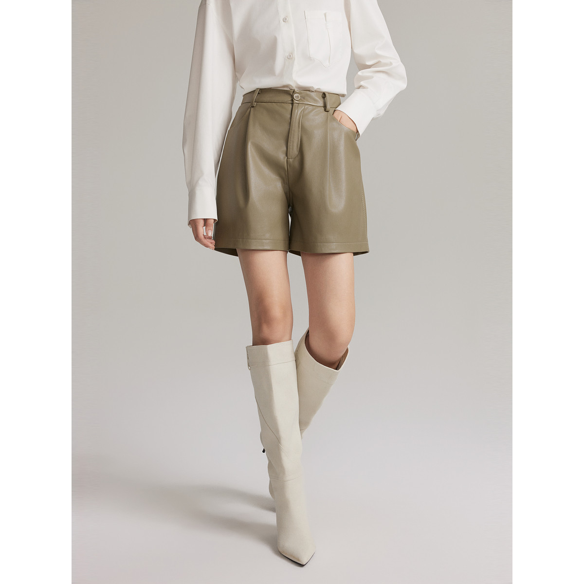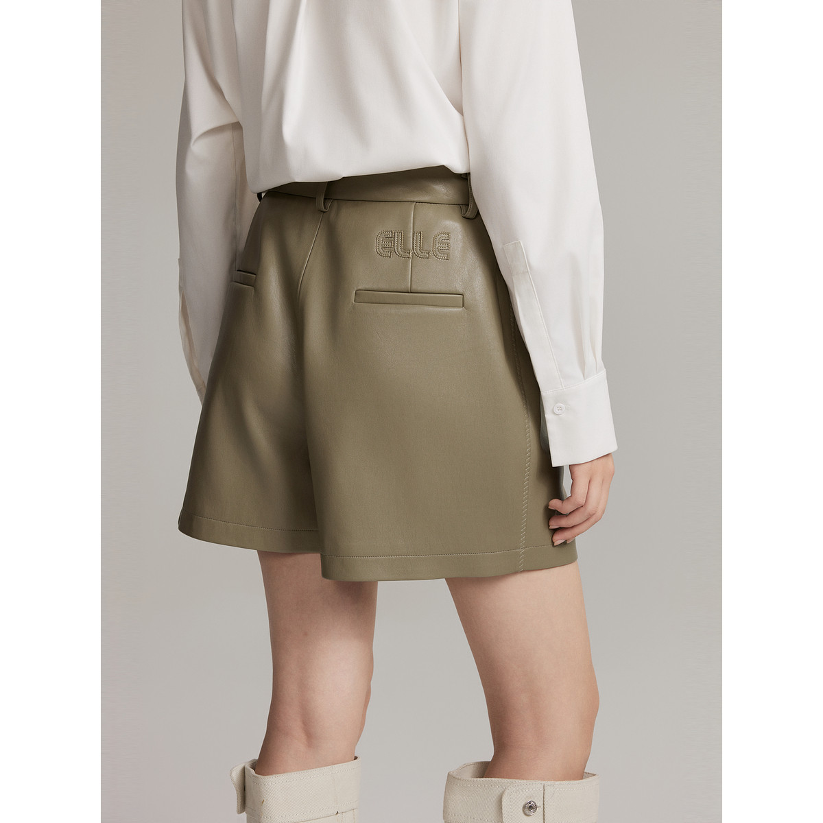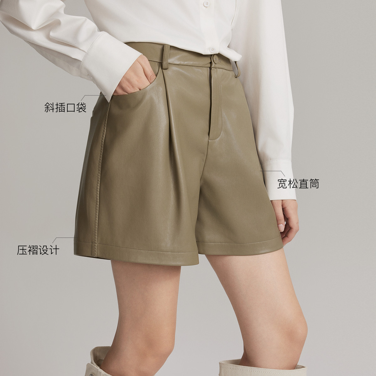 ELLE法式高级感宽松直筒休闲裤女2025冬季新款小个子短裤气质皮裤