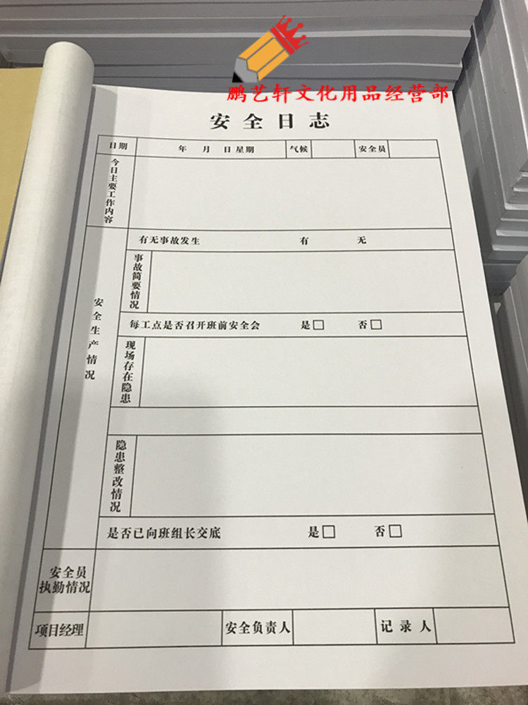 安全日志16KA4建筑施工地安全员日记工程检查监理日志装修记录本