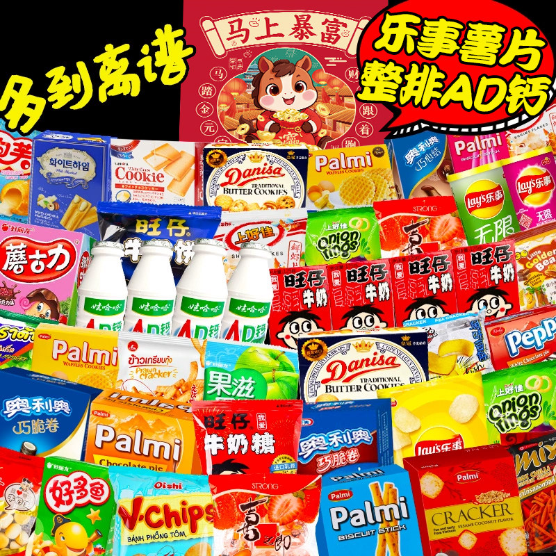 上好佳鲜虾片虾条薯片洋葱圈零食大礼包解馋小吃怀旧休闲食品批发