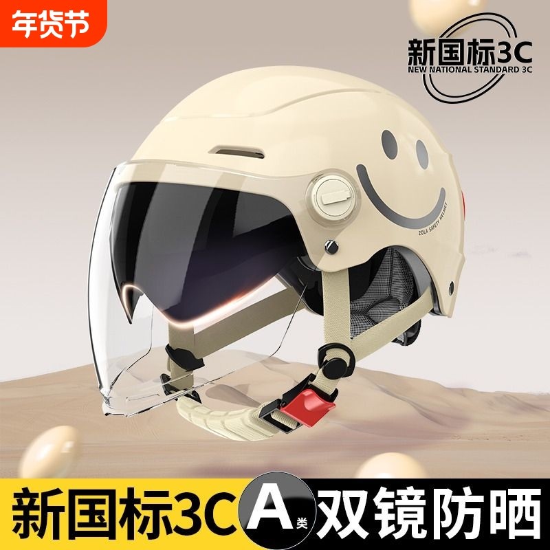 新国标3C认证电动车头盔夏季摩托防晒男女四季通用安全帽双镜镜片