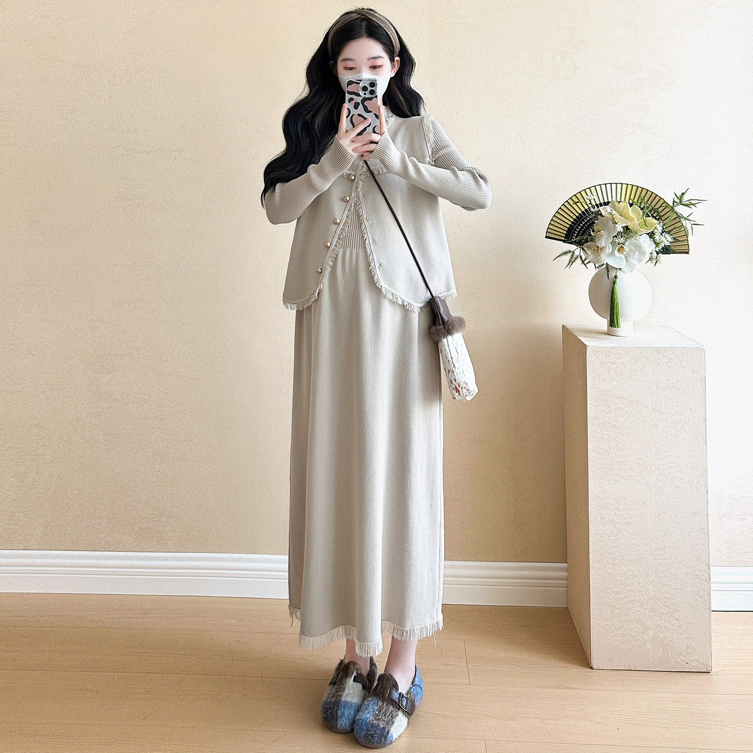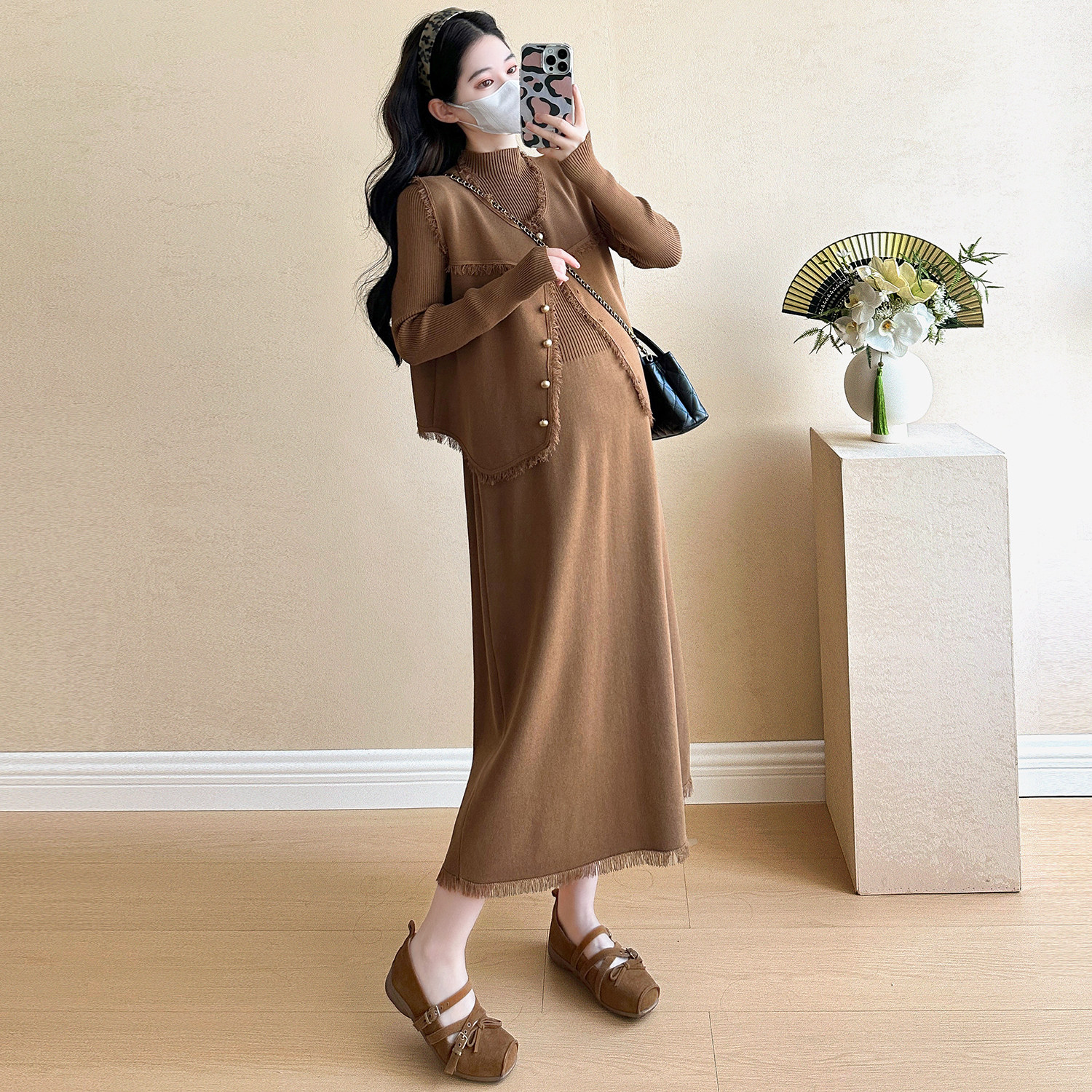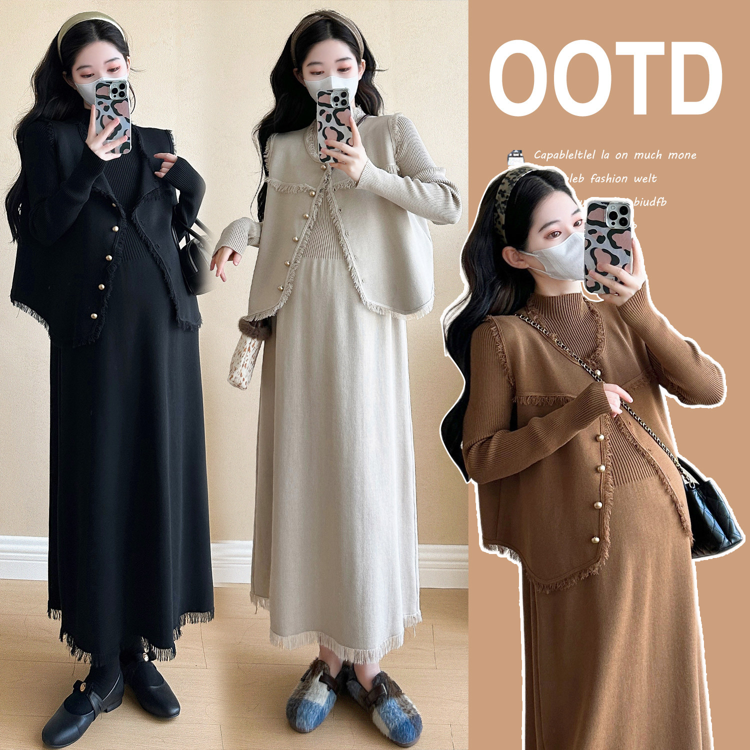 婧麒孕妇装新款冬装孕妇连衣裙高级外套孕妇裙子孕期洋气孕妇套装