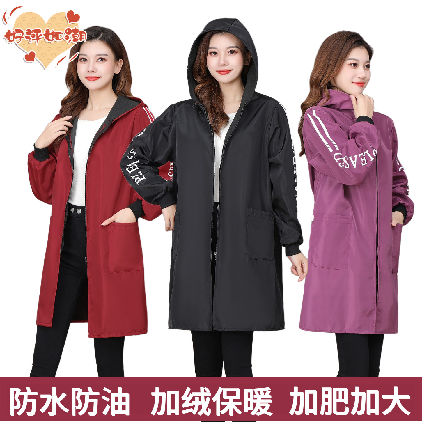 冬季加绒防水外穿耐脏工作服加厚新款女士围裙长袖防油厨房罩衣