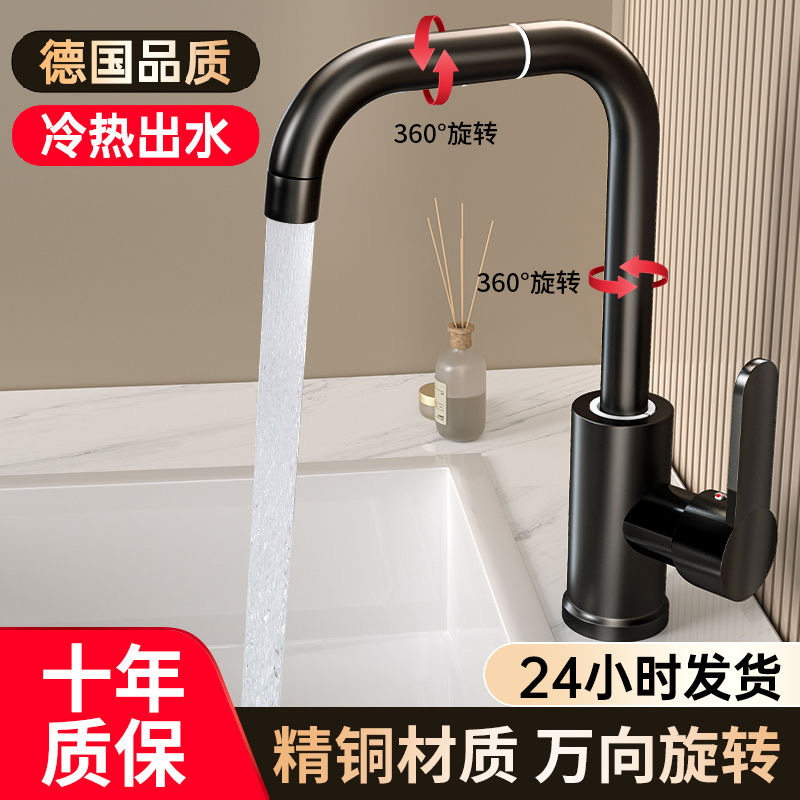 全铜七字洗脸盆水龙头冷热家用卫生间洗手盆多功能洗漱台面盆龙头