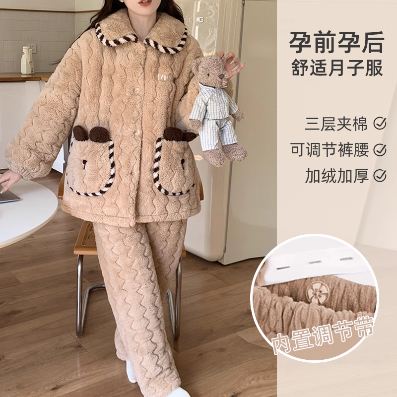 冬季珊瑚绒男士睡衣三层夹棉加厚加绒法兰绒秋冬款家居服保暖套装