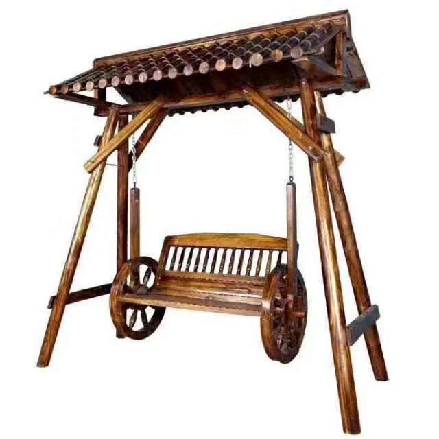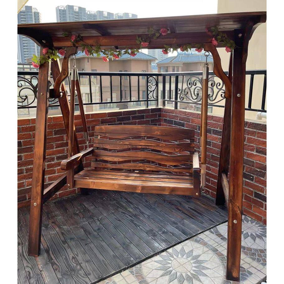 b双人防腐木摇椅室内外实木秋千户外休闲吊篮椅子庭院儿童荡秋千