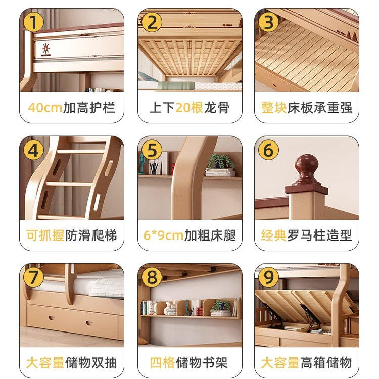 实木床橡木多功能上下床双层床儿童床子母床高低床双人床上下铺床