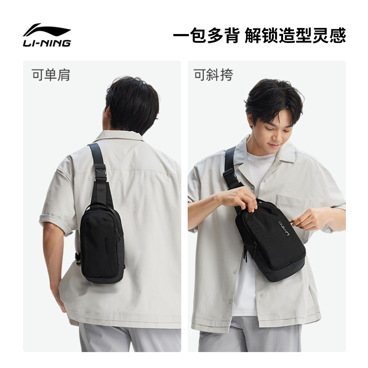 李宁斜挎包男士2026新款多功能胸包实用多分区防泼水户外单肩包女