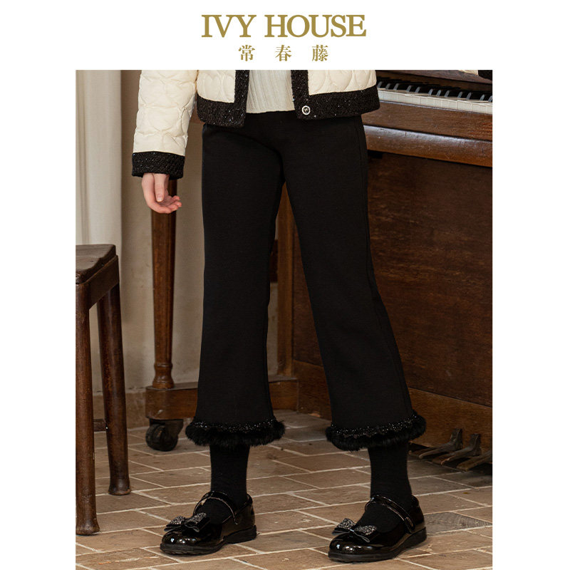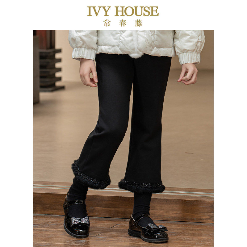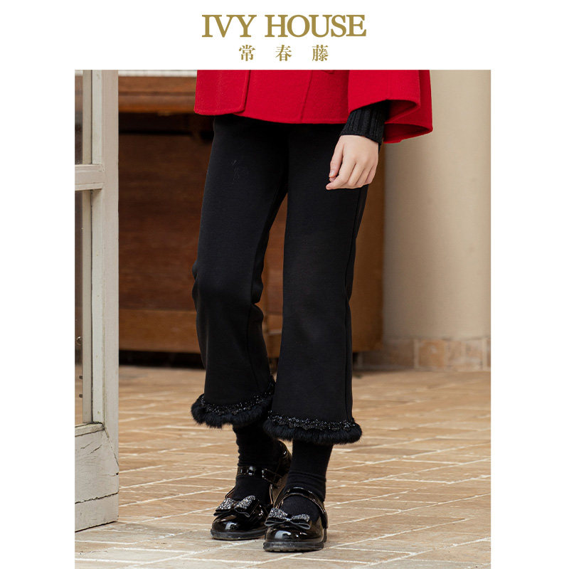 IVY HOUSE常春藤儿童装女童冬季款 修身加绒喇叭裤子毛绒脚口亲子