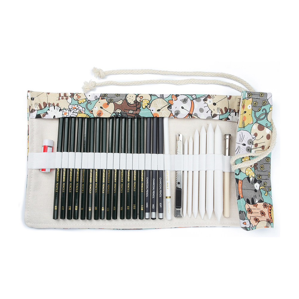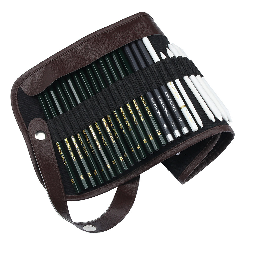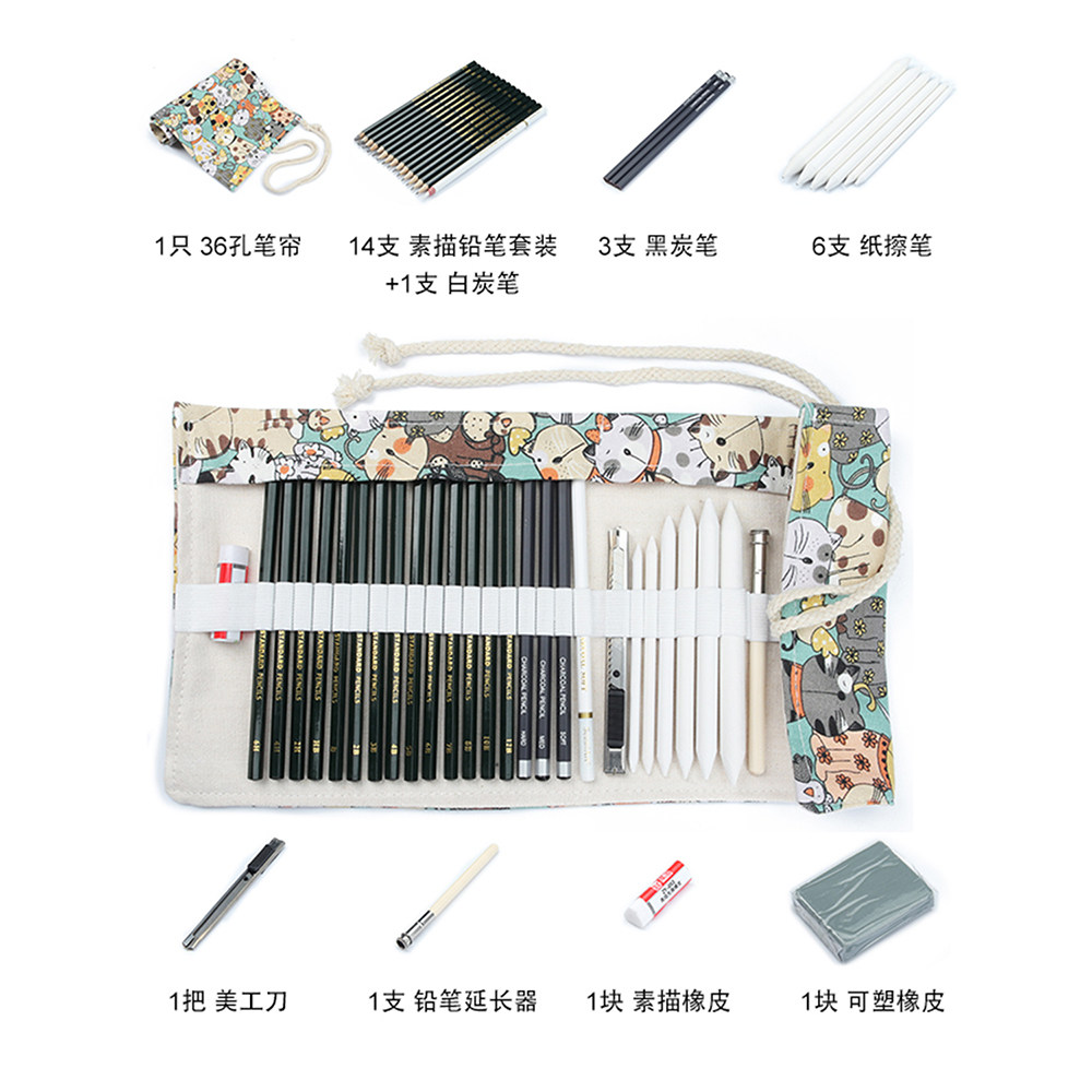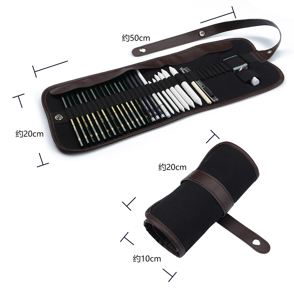 SeamiArt 素描铅笔工具套装 29件/套 帆布卷帘式学生速写绘画笔袋