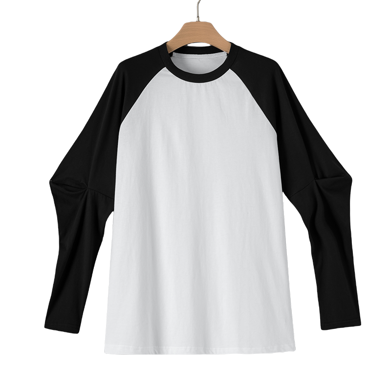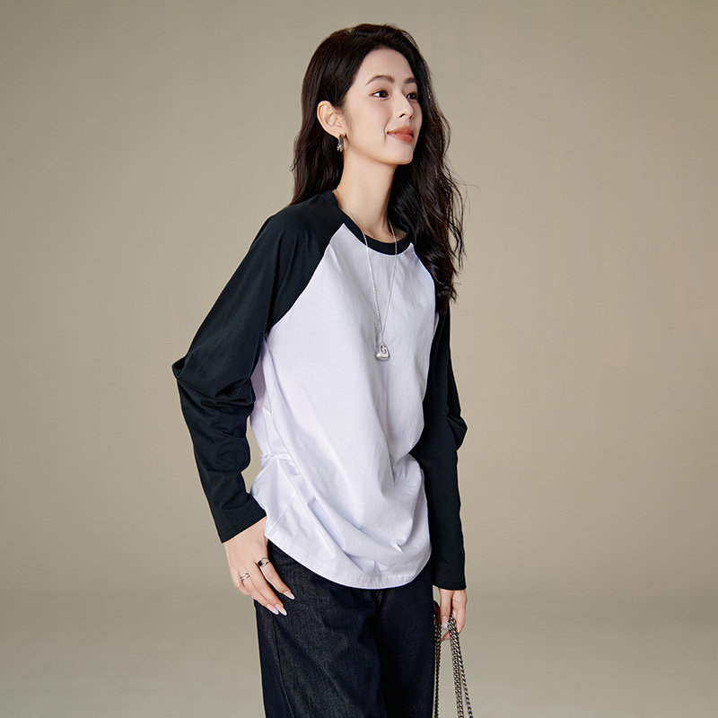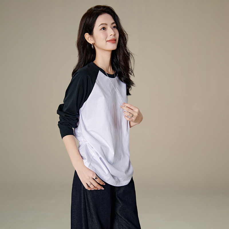 晚白2026年春新款经典黑白撞色全棉上衣宽松舒适百搭大码T恤衫女