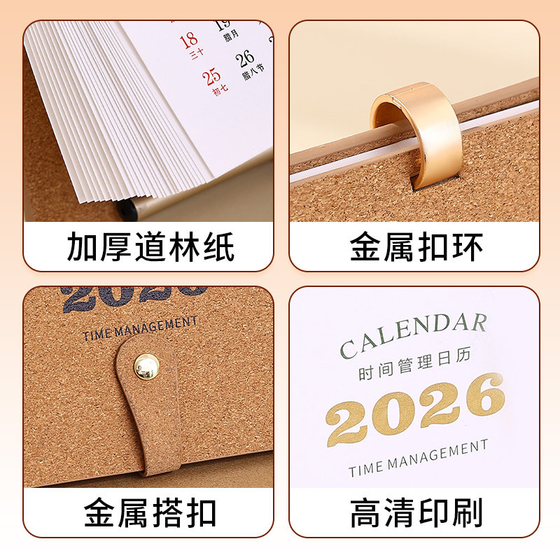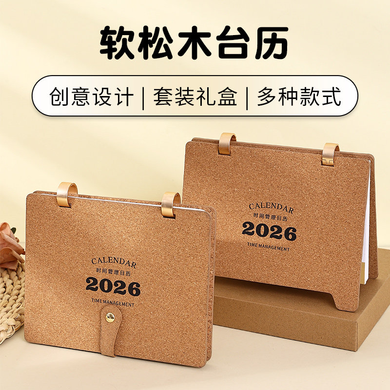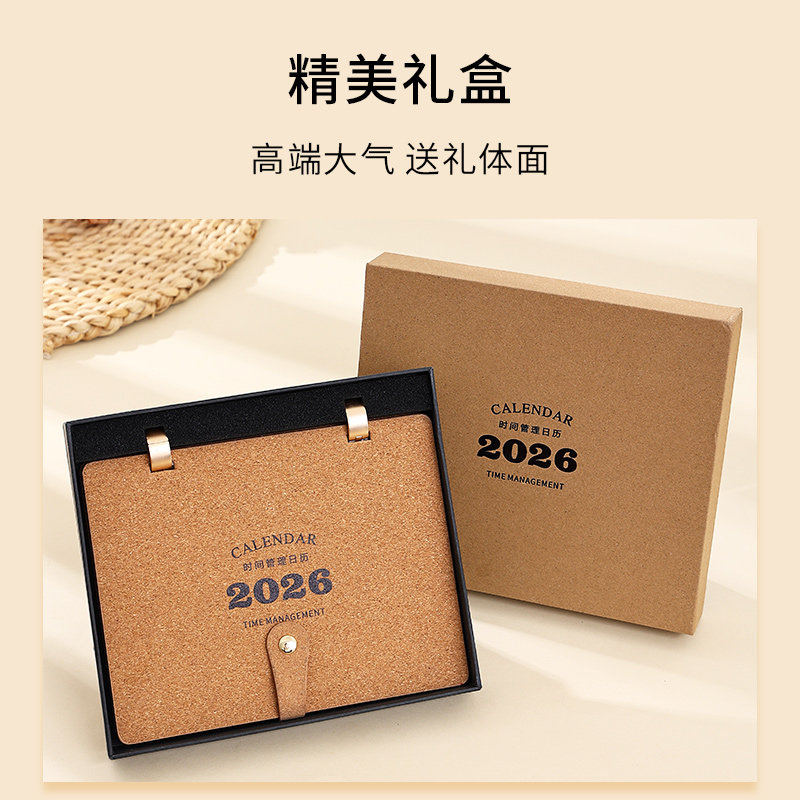 2026年软木质精美礼盒 可定制新款台历日历年历创意桌面摆件中国风马年月历印刷logo商务风新年礼品