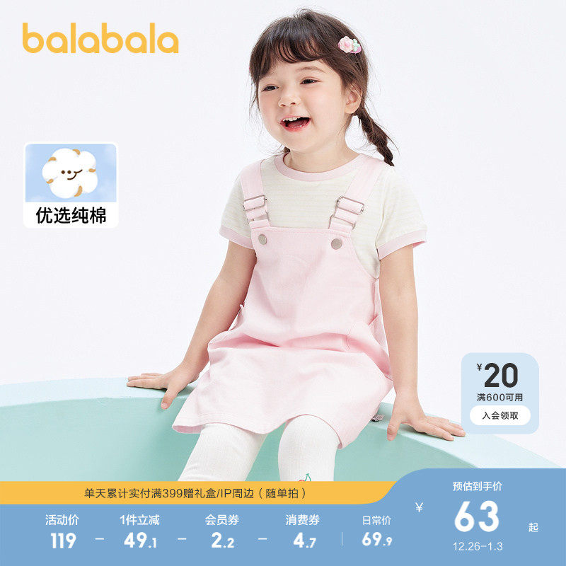 巴拉巴拉童装女童短袖套装新款背带裙夏装2025儿童休闲甜美舒适潮
